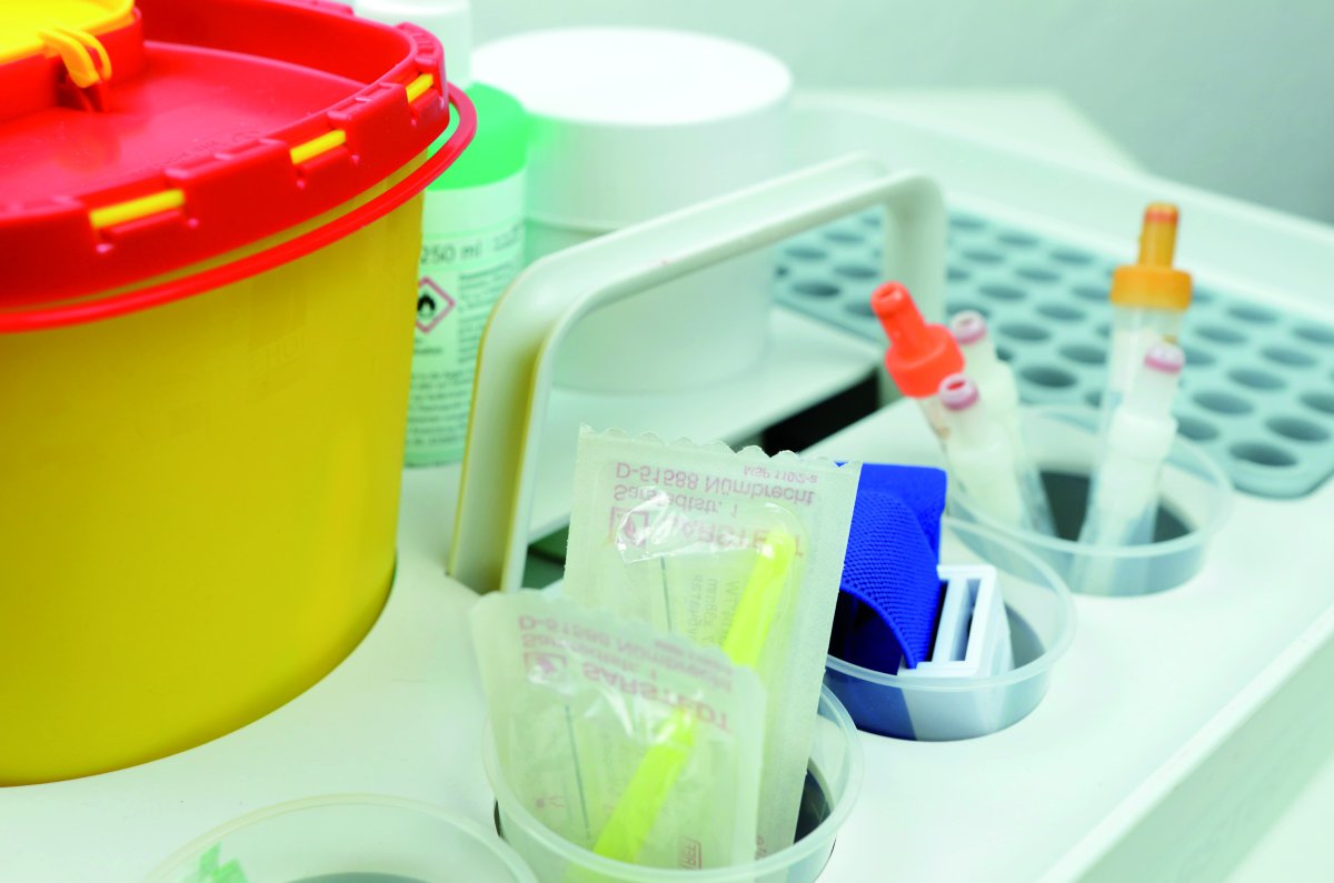 Vor Beginn sollten alle benötigten Utensilien griffbereit liegen, z.B. Handschuhe, das Venenstauband, ein Hautdesinfektionsmittel, die benötigten Kanülen und Blutentnahmeröhrchen, Tupfer, Pflaster usw.